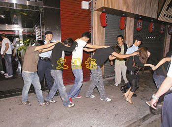 警方開燈搜查,在臥底探員逐一指證下,成功拘捕13男4女(由23至28歲),在其身上共檢獲24克K仔、70粒搖頭丸及1粒五仔等懷疑毒品,約值12000元。稍后,該批被捕者與2名涉超額收客的男主持人,連同證物一并帶署調(diào)查。