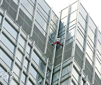 中新網4月16日電 據香港明報報道,法國蜘蛛俠再戰(zhàn)香港摩天大廈!曾征服世界近70幢高樓的攀爬好手羅伯特,繼1996年及2005年成功攀登遠東金融中心及長江集團中心后,15日再度徒手攀爬樓高60層的中環(huán)四季酒店。其間他因頂層結構復雜險告失手,幸最終有驚無險,大批市民報以掌聲及喝彩。