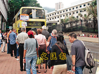 香港山頂纜車服務(wù)暫停,大批游客須改乘巴士上山頂。(圖片來源:文匯報)