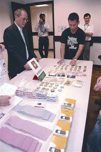 圖:澳門司警搜獲的大批啤牌及證物。(圖片來源:澳門日?qǐng)?bào))