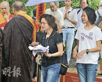 蘇志豪的親友11日到殮房認(rèn)尸后,與其同事分乘兩架旅游大巴,一行逾百人到出事現(xiàn)場致祭。部分女親友表現(xiàn)激動,不斷流淚,要由旁人攙扶安慰,場面哀傷。