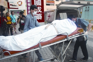 死者遺體由仵工送往殮房處理。(圖片來(lái)源:澳門(mén)日?qǐng)?bào))