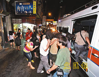 涉聚賭男女由探員押上警車。(圖片來(lái)源:文匯報(bào))