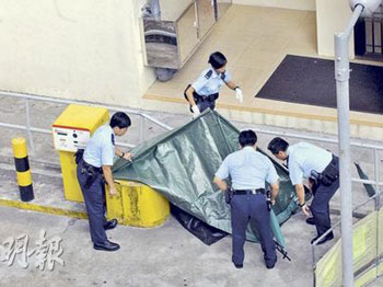 事發(fā)于28日早8時(shí)20分,身穿恤衫西褲的梁某離開何文田寓所,走到紅磡樂民新村樂善樓8樓梯間徘徊,不一會(huì),他跨過一米高的矮墻一躍而下,直墮停車場(chǎng)入閘機(jī)旁,路旁兩米欄桿被壓毀呈“V“形凹陷。保安員吳某驚聞巨響視察,赫見梁某倒臥血泊奄奄一息,大驚報(bào)案,救護(hù)員到場(chǎng)檢驗(yàn)后證實(shí)梁當(dāng)場(chǎng)斃命,毋須送院。