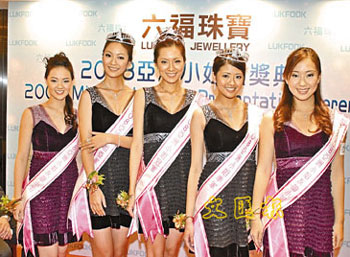中新網(wǎng)12月11日電 據(jù)香港《文匯報(bào)》報(bào)道,五位新鮮“出爐”的亞洲小姐:冠軍姚佳雯、亞軍顏?zhàn)臃、季軍賴琳恩及兩位友誼小姐姚鳳鳳與林淑蓉,10日到香港北角珠寶首飾贊助商門(mén)巿領(lǐng)獎(jiǎng)。