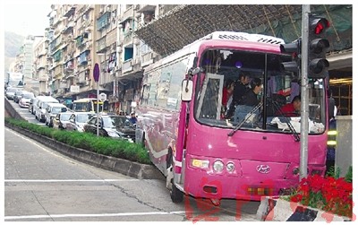 中新網(wǎng)1月15日電 據(jù)澳門日報(bào)報(bào)道,一輛旅游巴接載仁愛安老院十多名行動(dòng)不便的長者參觀澳門回歸賀禮陳列館后,回程時(shí)經(jīng)松山隧道進(jìn)高士德大馬路天橋時(shí),疑剎車失靈狂沖下斜。當(dāng)時(shí)培正中學(xué)對面的交通燈位有一輛的士正在候燈,巴士為免撞到的士,扭轉(zhuǎn)沖上花圃,再?zèng)_向安全島才停下,但仍撞及的士。