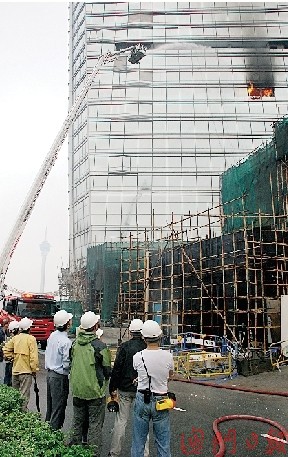 5日下午4時許,一號湖畔工地有工人發(fā)現(xiàn)酒店9樓有房間著火冒煙,立即報警。在消防未到達前,在該樓層工作的20多名工人立即逃走。大火產生的大量濃煙封鎖大樓梯間,并涌上更高的樓層,9樓以上工作的172名工人無法逃出,只有在25樓和40樓的防火層暫避,紛紛戴上口罩和用毛巾掩面,以防吸入濃煙。