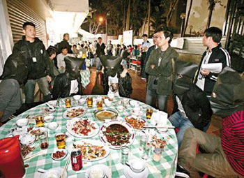 探隊(duì)在荃灣行動(dòng)中,包圍三陂坊一露天大牌檔,拘捕一批正在同臺吃晚飯的7男1女,當(dāng)場搜出利是等證物,懷疑“X房”黑幫進(jìn)行入會儀式,保家收受新入會者利是。