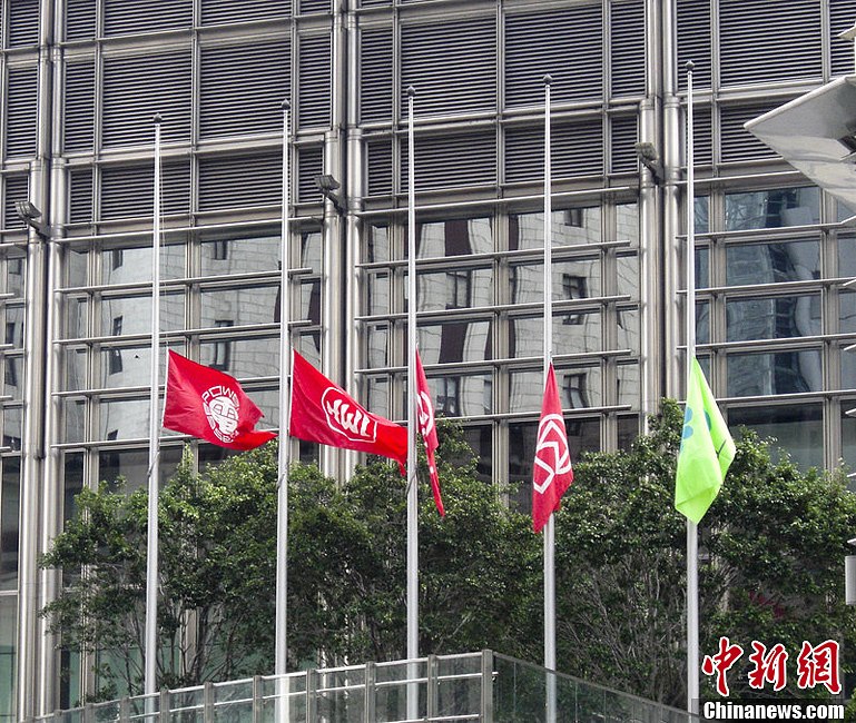 香港李嘉誠(chéng)長(zhǎng)江集團(tuán)中心下半旗致哀