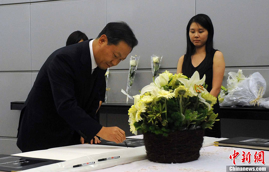 中聯(lián)辦主任彭清華到吊唁處悼念海難中的遇難者