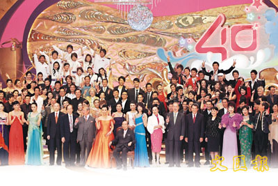 中新網(wǎng)11月20日電 香港無(wú)線電視為慶祝四十周年臺(tái)慶,昨(19日)晚舉行“萬(wàn)千星輝賀臺(tái)慶”,今年的臺(tái)慶可謂雙重意義,除了賀無(wú)線四十周年外,還有老板邵逸夫爵士迎來(lái)百歲生日。當(dāng)晚全臺(tái)藝員傾力演出,并起用十全十美司儀陣容:汪明荃、鄭裕玲、曾志偉、陳百祥、丘凱敏、陳敏之、葉翠翠、崔建邦、鄧健泓及王貽興。