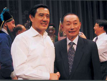 梅葆玖是國民黨在臺(tái)恢復(fù)“執(zhí)政”地位后首位赴臺(tái)演出的京劇藝術(shù)家,此行主要是為其在臺(tái)弟子、“國光劇團(tuán)”當(dāng)家青衣花旦魏海敏的演出“把場”。6月26日在臺(tái)北“城市舞臺(tái)”首場演出梅派經(jīng)典名劇《生死恨》,馬英九和夫人伉儷二人安坐座位上,自始至終全神貫注,欣賞了整場的演出。
