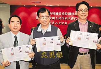 已取得56個提名的新界社團(tuán)聯(lián)會理事長羅叔清,在已宣布不再角逐連任人代的李連生,與民建聯(lián)立法會議員張學(xué)明等人陪同下報名,其參選主要的政綱包括如何按照人大常委會的“決定”,并按基本法規(guī)定平穩(wěn)發(fā)展香港的政制,如何加強(qiáng)國民教育,以致國家扶貧工作、食物安全與環(huán)保等方面的關(guān)注。他透露,新界社團(tuán)聯(lián)會法律顧問簡松年正積極考慮以個人身份,參與港區(qū)人大代表選舉。