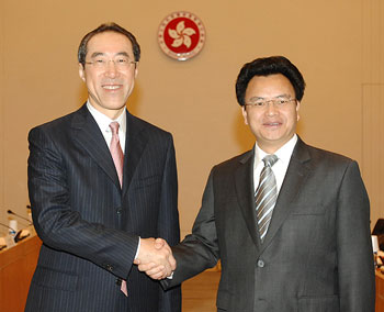 唐英年和廣東省副省長萬慶良,23日在香港共同主持工作會議。雙方同意,第11次粵港合作聯(lián)席會議今夏在廣州舉行,而多項作項目及工作計劃也達成共識。