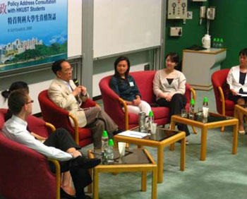 特首曾蔭權(quán)與學(xué)生代表對(duì)話。(圖片來源:大公報(bào))