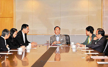 行政長官曾蔭權(quán)18日上午在中區(qū)特區(qū)政府合署會見公民黨成員,就稍后發(fā)表的施政報告進(jìn)行咨詢。(圖片來源:文匯報)