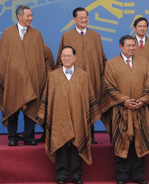 出席會(huì)議后,曾蔭權(quán)與其它經(jīng)濟(jì)體系領(lǐng)導(dǎo)人穿上秘魯?shù)膫鹘y(tǒng)服裝拍攝官方合照,并且見(jiàn)證領(lǐng)導(dǎo)人宣言的公布。