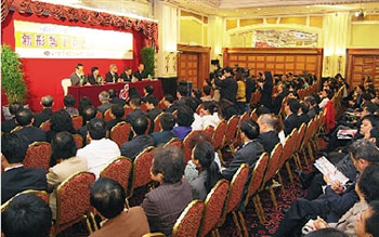 張銘清在講座上表示,今年3月下旬以來,臺灣局勢發(fā)生積極變化,兩岸關系發(fā)展出現(xiàn)難得的歷史機遇。主要表現(xiàn)在:一、大陸方面提出了新形勢下發(fā)展兩岸關系的重要主張,兩岸雙方開始出現(xiàn)良性互動;二、海協(xié)會與臺灣;鶗凇熬哦沧R”的基礎上恢復制度化協(xié)商,并取得實際成果;三、兩岸經(jīng)貿(mào)交流和人員往來取得新突破,為兩岸關系注入了穩(wěn)定的因素和發(fā)展的動力;四、臺灣體育健兒到北京參加奧運會和殘奧會,兩岸同胞共圓中華民族百年奧運夢想。