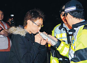 警方250名交通警員已接受訓(xùn)練使用“快速呼氣測試”,配合9日起在全港各區(qū)道路設(shè)立的“路障”,隨機截查車輛,要求司機進行快速呼氣測試,及格者2分鐘內(nèi)即可放行,不及格者則須下車進行俗稱“吹波波”的正式酒精呼氣測試,若測出每100毫升呼氣中,酒精含量達22微克以上,司機會實時被捕。