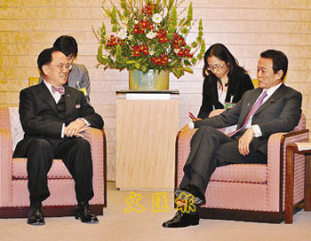 曾蔭權(quán)又與日本首相麻生太郎會晤,討論金融海嘯的最新發(fā)展,并就兩地的應(yīng)對措施交換意見,并談及港日兩地不斷增長的貿(mào)易、旅游和文化合作。
