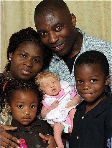 女嬰父親本,44歲,是一名客戶服務(wù)顧問;母親安吉拉,35歲。兩人都是典型的黑人,之前生出的兩個孩子都是黑人,而且家族都沒有混血通婚的歷史。