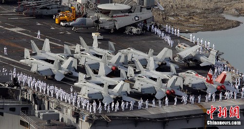 這次名為“不屈意志”的聯(lián)合軍演是從25日清晨開始的,美國(guó)海軍“喬治·華盛頓”號(hào)航空母艦、號(hào)稱“亞洲最大”的韓國(guó)“獨(dú)島”號(hào)運(yùn)輸艦、“文武大王”號(hào)和“崔永”號(hào)韓國(guó)型驅(qū)逐艦、韓美兩國(guó)潛水艇等韓美艦艇當(dāng)天陸續(xù)離開停泊的釜山港和鎮(zhèn)海港,前往韓國(guó)以東的日本海會(huì)合。除20多艘艦艇外,美國(guó)最新型F-22“猛禽”戰(zhàn)斗機(jī)和韓國(guó)F-16、F-15K等200多架飛機(jī)參加了本次演習(xí),韓美投入的兵力達(dá)到8000多人。