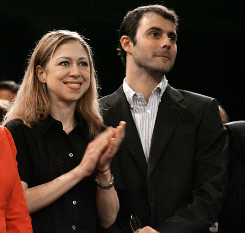 據(jù)悉,新郎馬克的父親艾德•梅茲文斯基是艾奧瓦州前參議員,現(xiàn)年73歲;母親是賓夕法尼亞州前眾議員。他們與克林頓一家是多年老友。2005年,切爾西與前任男友分手后,便經(jīng)常與馬克同去泡吧消磨時(shí)光,并很快墜入愛河。