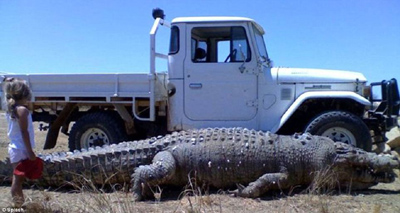據(jù)稱,這條鱷魚從鼻子到尾部總長(zhǎng)為22英尺(約合6.7米),相當(dāng)于一輛卡車的長(zhǎng)度。現(xiàn)在這條巨型鱷魚已經(jīng)被當(dāng)?shù)剞r(nóng)民射死,因?yàn)樗恢痹谝u擊牛羊等家畜。