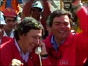 報(bào)道稱,救援人員通過鉆孔接通電話線,被困礦工通過電話說他們健康狀況良好,但是說他們有胃痙攣,因?yàn)楸焕畮滋飚?dāng)中,每48小時(shí)每個(gè)礦工只能吃兩湯匙金槍魚,一口牛奶和半塊餅干維持生命。