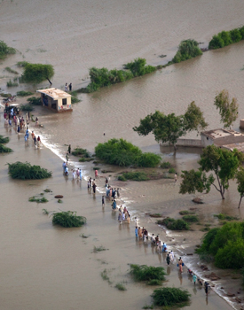 洪水已經(jīng)淹沒(méi)了巴基斯坦三分之一的土地,援助物資依然極為匱乏,工程師們經(jīng)常需要面對(duì)將洪水引向何方的困難抉擇。毀掉堤壩是控制洪水水位最常用的方式之一,謹(jǐn)慎行事可以減小洪災(zāi)的影響?墒,一些報(bào)道稱,旁遮普省Muzaffargarh地區(qū)的地方官員迫使工程師將洪水引向人口密集區(qū),而避開(kāi)更小、更富裕的地區(qū)。