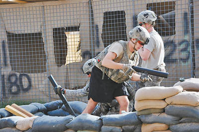 作為首批進入戰(zhàn)區(qū)最前線的記者,兩名中國記者被分派到戰(zhàn)事最激烈的阿爾甘達卜河谷諾蘭基地。這個基地駐有美軍101空中突擊師320野戰(zhàn)炮兵團的A連。他們的直接對手是距基地僅200米的恰科巴村的20~25名塔利班骨干戰(zhàn)斗人員和人數(shù)不詳?shù)乃嘀С终。郝洲告訴中國青年報記者說:“從9月1日發(fā)動‘坎大哈合作’以來,阿爾甘達卜河谷的美軍幾乎天天與塔利班交火,雙方都動用了迫擊炮,美軍更是動用了B-1戰(zhàn)略轟炸機、‘阿帕奇’武裝直升機和OH-58D偵察直升機?墒侵钡浆F(xiàn)在,塔利班的抵抗力度并沒有降低。”