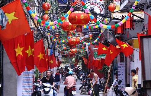據(jù)法新社消息,越南首都河內將于10月1日迎來建城1000周年大慶,屆時,河內將連續(xù)10天舉行各項慶祝活動。目前河內的大街小巷掛滿了嶄新的國旗和各式各樣的燈籠,到處喜氣洋洋。