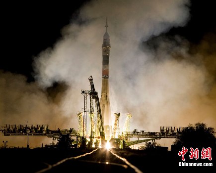 電視畫面顯示,該枚宇宙飛船用火箭從哈薩克斯坦境內的拜科努爾人造衛(wèi)星發(fā)射基地發(fā)射升空,據(jù)報道,飛船將搭載3名宇航員前往國際空間站。宇航員中包括美國和俄羅斯宇航員。