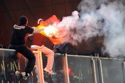 在比賽開始前,塞爾維亞球迷向意大利拉拉隊(duì)與球場(chǎng)內(nèi)投擲照明彈與爆竹。比賽開場(chǎng)延后了35分鐘。防暴警方被迫出動(dòng)大批警力維持秩序。