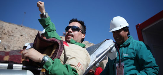 第一名獲救礦工阿瓦洛斯在格林尼治標(biāo)準(zhǔn)時間3時10分(當(dāng)?shù)貢r間凌晨零時10分)升井。獲救的工人由直升機(jī)送到附近醫(yī)院接受檢查。