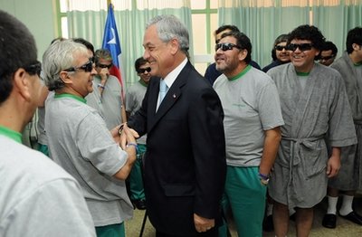 同時,智利總統(tǒng)皮涅拉在堅守礦井現(xiàn)場,迎接所有礦工逐一出井后,當天前往礦工所在醫(yī)院進行探望。他與礦工們握手交談,對他們重獲新生表示祝賀。