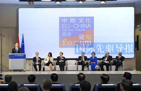 這是10月6日舉行的首屆中歐文化高峰論壇現(xiàn)場。為期兩天的論壇由中國文化部、歐盟委員會對外關(guān)系總司和教育文化總司共同主辦。開幕式當(dāng)天,和歐盟委員會主席巴羅佐一起出席論壇的中國總理溫家寶意味深長地發(fā)表演講說:“文化交流比政治交流更久遠(yuǎn),比經(jīng)濟(jì)交流更深刻!