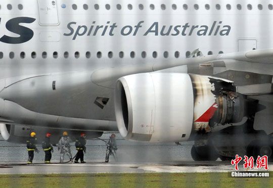 據(jù)路透社報道,澳大利亞航空公司一名發(fā)言人說,該公司一架航班號為QF32的空客A380客機引擎出現(xiàn)故障,被迫關(guān)閉了4個引擎中的1個,于當(dāng)?shù)貢r間4日中午12時左右在新加坡機場實施降落。