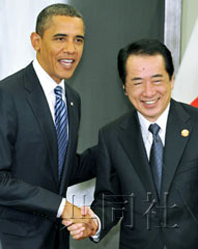 中新網(wǎng)11月13日電 據(jù)日本共同社13日報(bào)道,日本首相菅直人13日上午在橫濱與來日參加亞太經(jīng)合組織(APEC)峰會(huì)的美國總統(tǒng)奧巴馬舉行會(huì)談。兩國首腦就進(jìn)一步“深化”同盟關(guān)系達(dá)成一致。會(huì)談結(jié)束后,奧巴馬向記者表示,美國將“毫不動(dòng)搖”地堅(jiān)持保衛(wèi)日本這一決心。