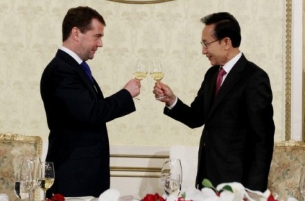 韓國對俄羅斯同樣興趣濃厚,11月10日在韓國總統(tǒng)府青瓦臺的共同記者會上,總統(tǒng)李明博也表示有意增加在俄羅斯投資。2009年,韓國對俄經濟貢獻約13億美元,其中近5億美元為直接投資;今年初,韓國現(xiàn)代汽車位于圣彼得堡的組裝廠完工,這里每年可生產十萬輛汽車。
