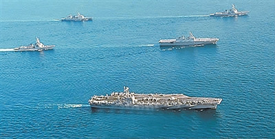 此次演習(xí)中,美軍不僅派出搭載著超過(guò)6000名士兵和75架戰(zhàn)機(jī)的“喬治·華盛頓”號(hào)核動(dòng)力航母,還出動(dòng)9600噸級(jí)的“考彭斯”號(hào)導(dǎo)彈巡洋艦和9750噸級(jí)的“斯特蒂姆”號(hào)導(dǎo)彈驅(qū)逐艦。韓國(guó)方面也投入7600噸級(jí)“世宗大王”號(hào)宙斯盾級(jí)驅(qū)逐艦、兩艘4500噸級(jí)驅(qū)逐艦以及巡邏艦、護(hù)航艦、戰(zhàn)斗支援艦和反潛飛機(jī)等。