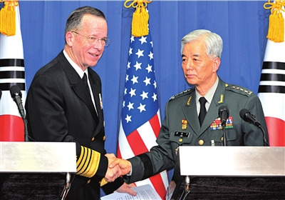 美軍參謀長(zhǎng)聯(lián)席會(huì)議主席馬倫8日與韓國聯(lián)合參謀本部議長(zhǎng)韓民求舉行會(huì)談,商討朝鮮半島局勢(shì)。
