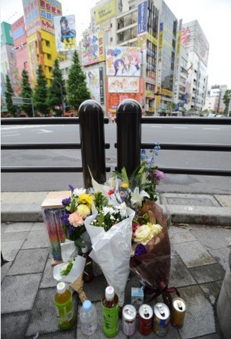 據(jù)日本《每日新聞》6月8日報道,2008年,東京秋葉原步行街發(fā)生一起當街砍人事件,共造成7人死亡,10人重傷。8日,事件迎來了發(fā)生五周年紀念日。曾是派遣公司職員的犯罪嫌疑人加藤智大以殺人罪被起訴,一審判決和二審判決均為死刑。在事件現(xiàn)場的十字路口的一個角落,從8日一早就開始有人供奉鮮花,并雙手合十祈禱。