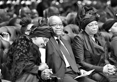 此后,曼德拉的家人代表,他在監(jiān)獄中的獄友,參加葬禮的馬拉維女總統(tǒng)班達(dá),坦桑尼亞總統(tǒng)基奎特,以及南非總統(tǒng)祖馬等先后在葬禮上講話。祖馬還帶頭引領(lǐng)全場唱挽歌送別曼德拉。