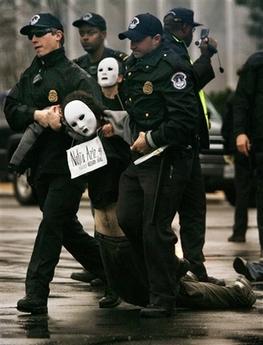據香港《文匯報》報道,在美國國稅局大樓,100多名反戰(zhàn)人士企圖封鎖入口,其中數人甚至越過圍攔在門前靜坐。示威者稱,針對國稅局是因為它撥款資助伊戰(zhàn),警方到場后拘捕了32人,并迅速清場。
