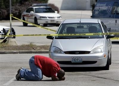 死者的一位親戚趕到槍案現(xiàn)場(chǎng)后非常悲痛。