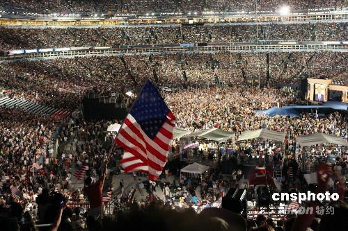 奧巴馬對在一連串愛國歌曲中揮舞著數(shù)千面小國旗,展現(xiàn)愛國情操的群眾說:“我要告訴你,約翰-麥凱恩先生,我們所有人都把國家擺在第一位。”