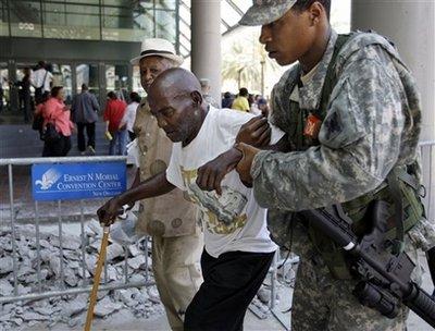 美國(guó)民衛(wèi)隊(duì)士兵幫助一名老者撤離。
