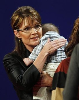 佩林抱兒子亮相副總統(tǒng)候選人辯論。
