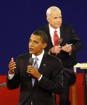 這位伊利諾斯州參議員在第一輪辯論中多次稱麥凱恩為“約翰”,而在7日的第二輪辯論中,則稱后者“麥凱恩參議員”。